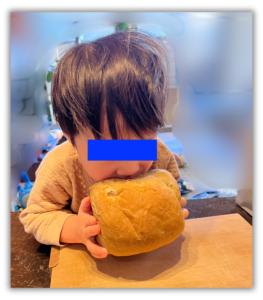 焼きたてのパンは、驚くほど中がふわふわで密度がしっかり詰まってて。外の耳はカリッとかために仕上がって、噛むほどに小麦の甘みが広がる。もう何も足す必要ないじゃん、って。子供は今や、食パンの状態からそのままかぶりついて喜んでます。